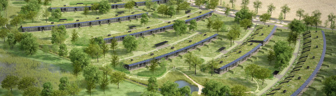 't Eemgoed à Almere - Pays-Bas : un projet résidentiel unique de l’architecte cepezed de 82 logements où un nouveau mode de vie, le contact avec la nature et la neutralité énergétique occupent une place centrale. Le domaine est reconnaissable par sa structure de maisons longues - des bungalows reliés entre eux, entourés par le paysage - entre lesquelles se trouvent plusieurs espaces verts destinés, entre autres, à des potagers et à des aires de jeux. Les promoteurs/initiateurs de 2Open et de cepezedprojects ont opté pour un logement doté d'une toiture avec isolation inversée végétalisée par JACKON Insulation GmbH afin de renforcer son caractère durable. La réalisation a été faite en collaboration avec Quality Roofing Systems et Roof Protection.